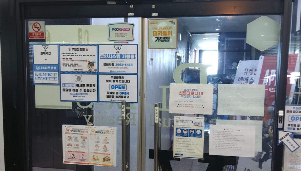 야간 무인관제시간에는 김포무인PC방 출입구가 잠겨 있습니다. 기존방문객은 지문등록을 한 후 자유롭게 출입할 수 있습니다.
