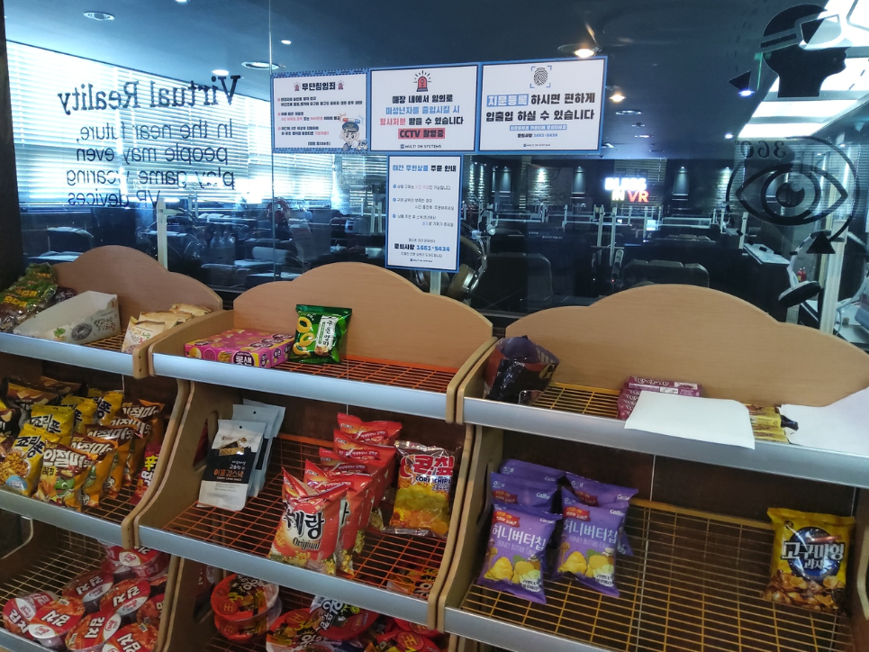 김포무인피시방 매점은 오픈형 셀프바 형태입니다. 매점 주변에는 CCTV가 설치되어 있으며, 동작인식시스템으로 관리되기 때문에 주문없이 무단으로 가져갈 수 없습니다.