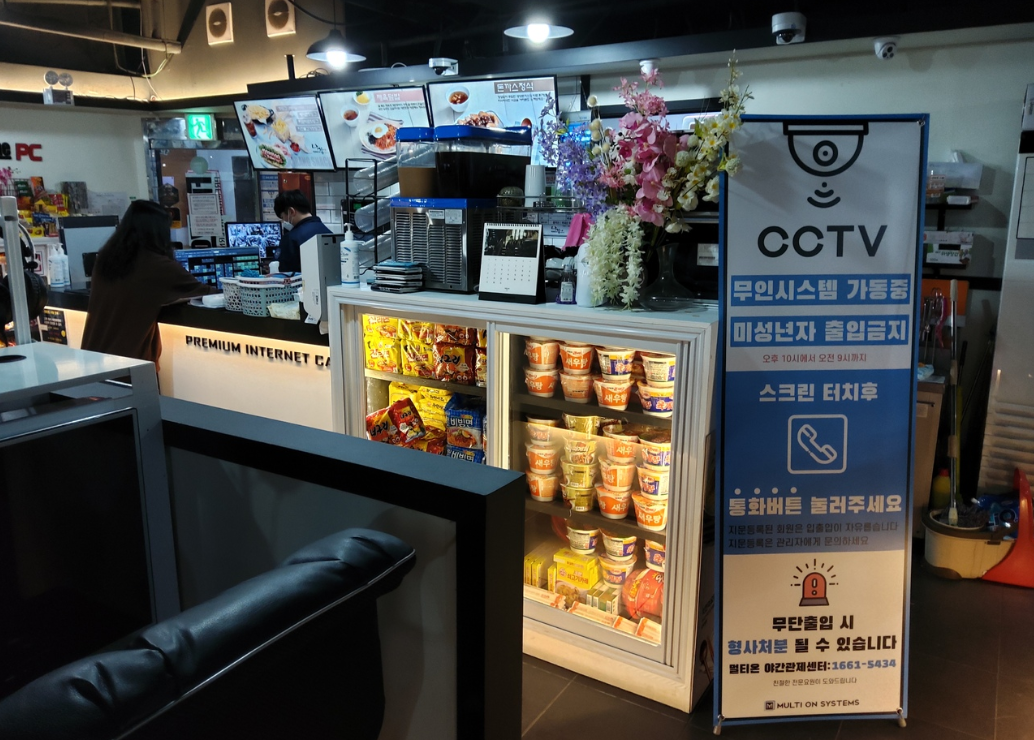 멀티온시스템즈 무인관제시스템은 체계적인 관제시스템을 갖추고 있으며, 카운터와 매점에는 동작인식센서를 설치해 야간무인관제 시간에 PC방 이용객의 접근을 확인하고 있습니다.