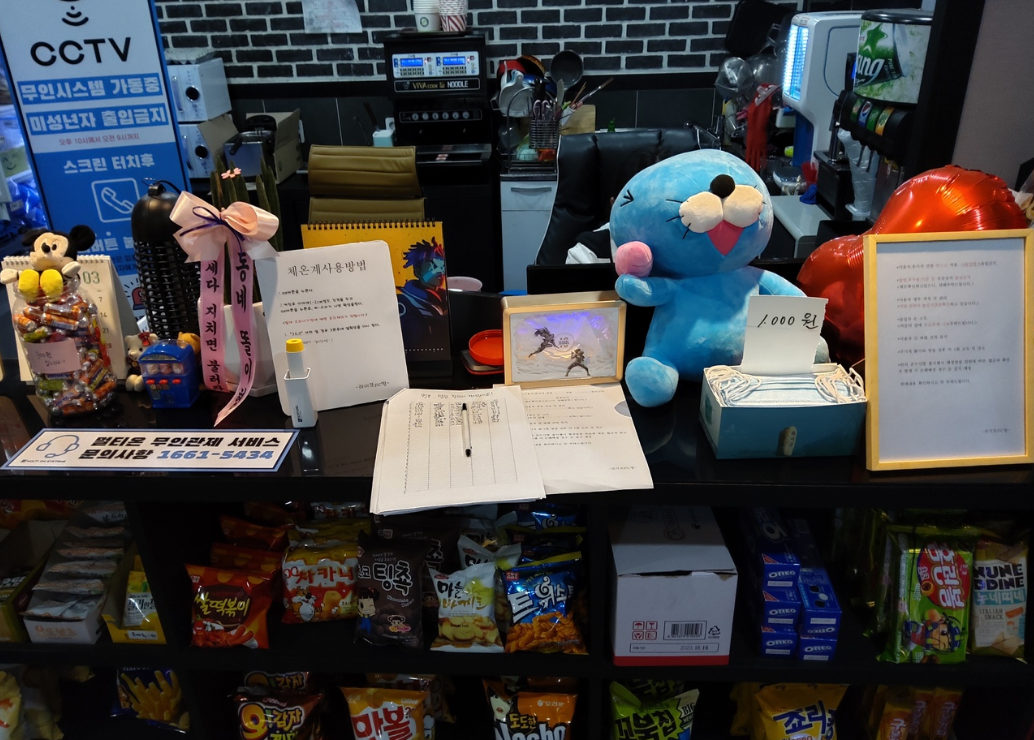 PC방 무인관제시간에도 매점을 이용하는 회원분들이 많습니다.