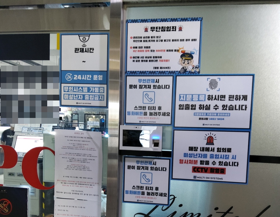 무인관제시간에는 무인PC방 출입구는 잠겨 있습니다.