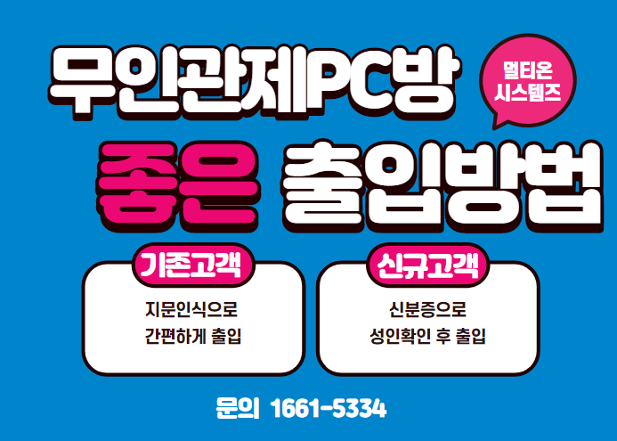 야간 무인관제피시방 도입! 미성년자출입이나 도난, 분실 등의 걱정으로 결정을 미루시고 있나요?