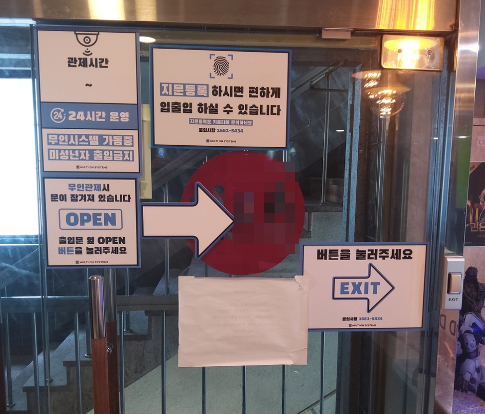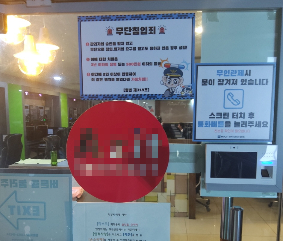 무인관제시간 동안 대전동구 무인피시방 출입구는 잠겨 있습니다. 기존 회원분들은 지문등록을 통해 자유롭게 출입할 수 있습니다.