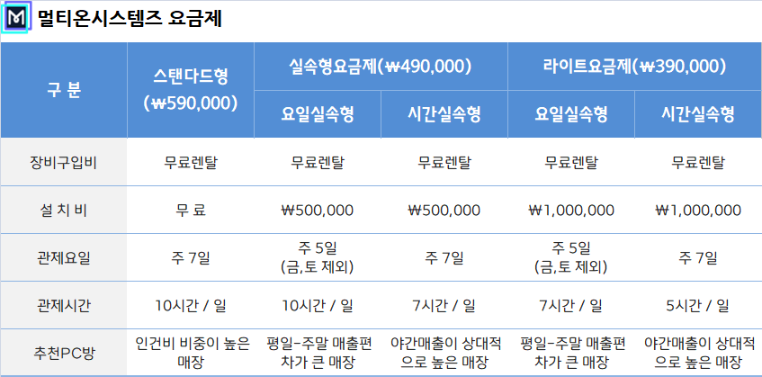 멀티온시스템즈 PC방 무인관제시스템 특징