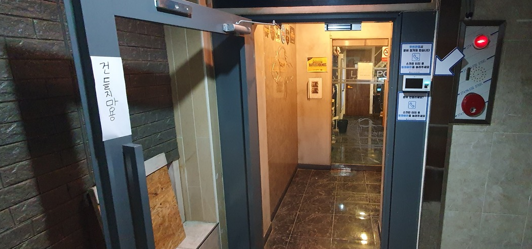 먼저 진주 무인피시방 출입구 부터 보겠습니다. 기존회원의 경우 미리 등록한 지문이증을 통해 출입이 가능합니다.
