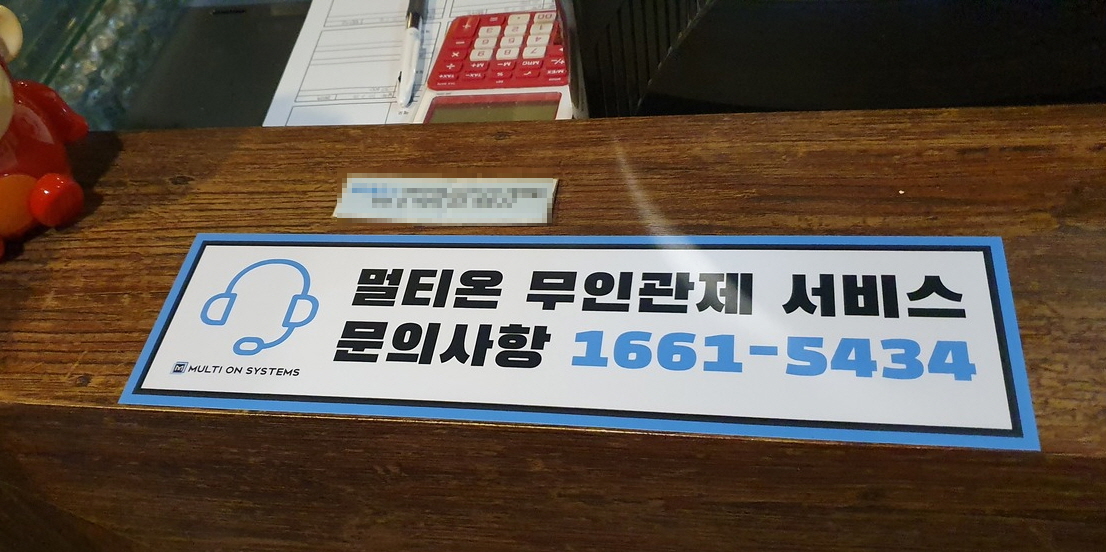 매점에도 무인관제시스템 안내문이 붙어 있습니다.