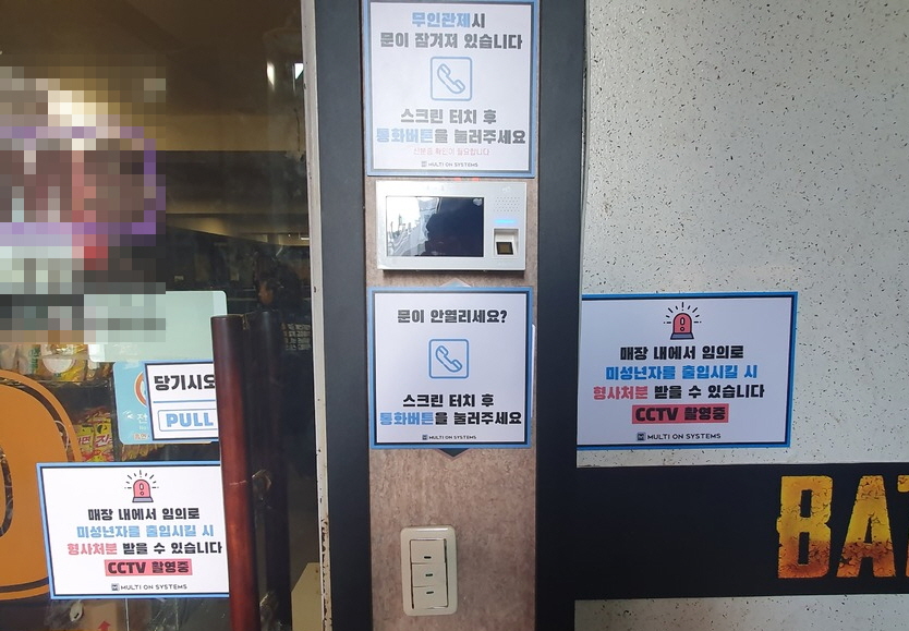 외부와 마찬가지로 PC방무인관제에 대한 안내문이 붙어 있습니다.