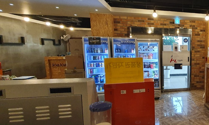 안동셀프피시방으로 들어오면 바로 카운터와 음료수매다가 있습니다.