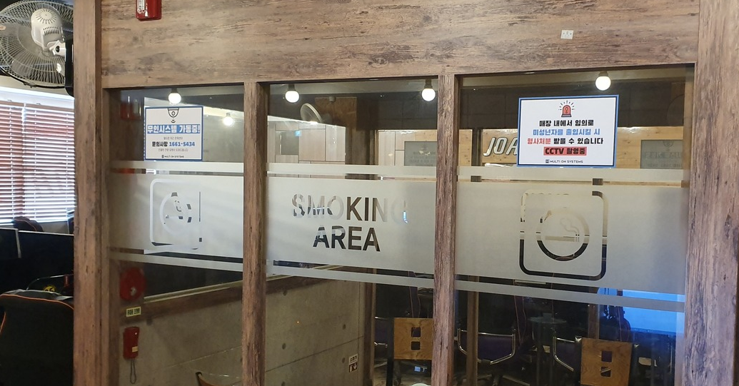 스모킹룸에도 멀티온시스테즈 안내문이 붙어있습니다.