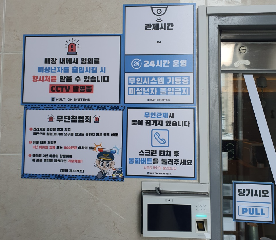 무인관제시간 동안 카운터에는 출입이 불가합니다.