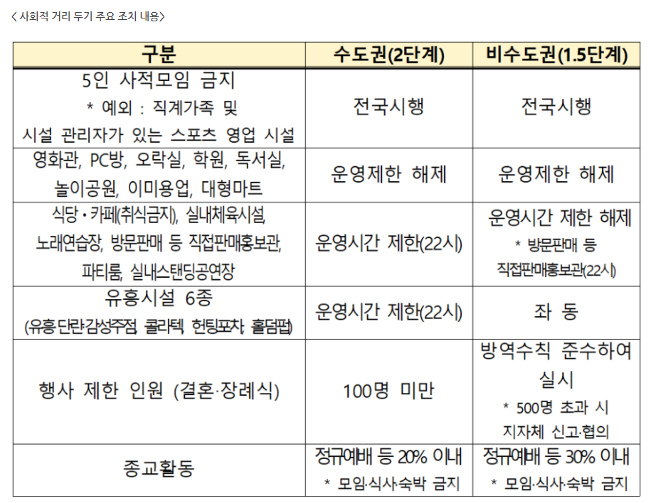 사회적거리두기 수도권 2단계, 비수도권 1.5단계가 2주가 유지됩니다.