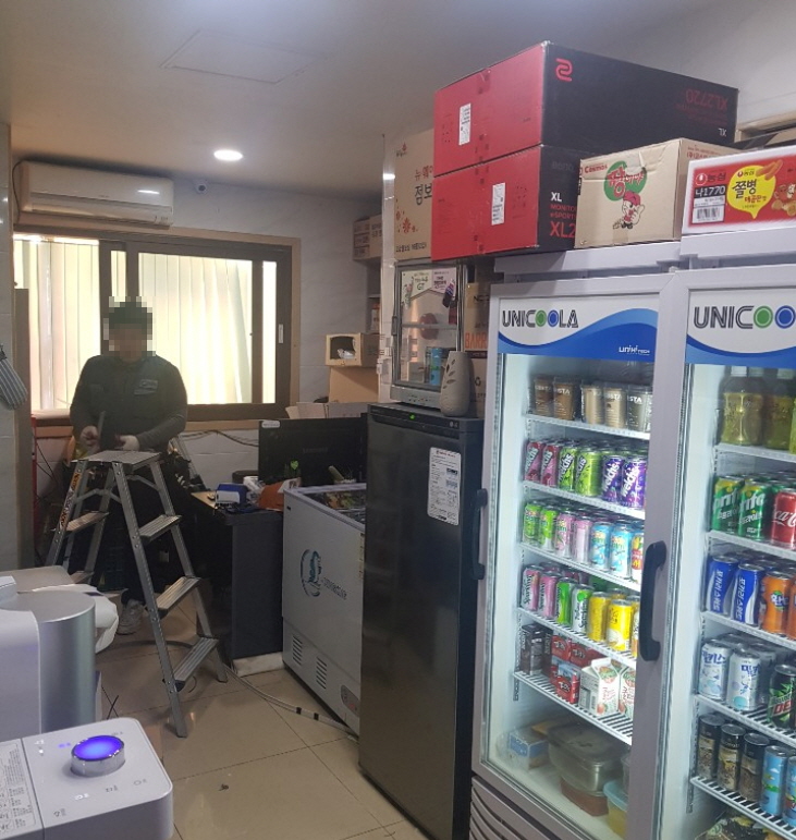 설치기사님이 논산무인피시방 매대에 CCTV를 설치 중입니다.
