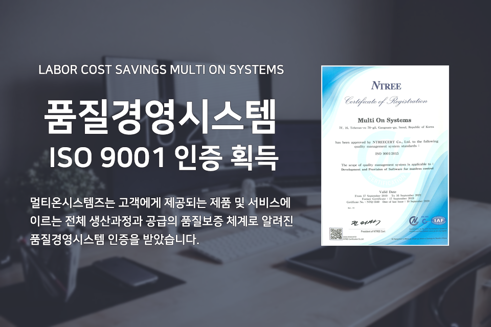멀티온시스템즈는 ISO9001과 중소기업 메인비즈 인증을 받은 안정된 PC방무인솔루션을 서비스하고 있습니다.