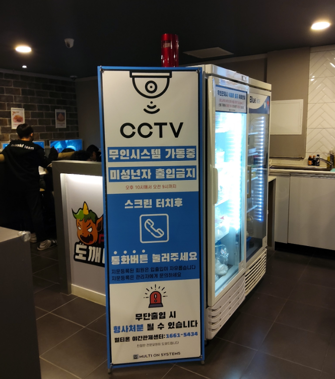 무인점포를 안전하게 관리하기 관제시스템을 설치하는 게 일반적입니다.