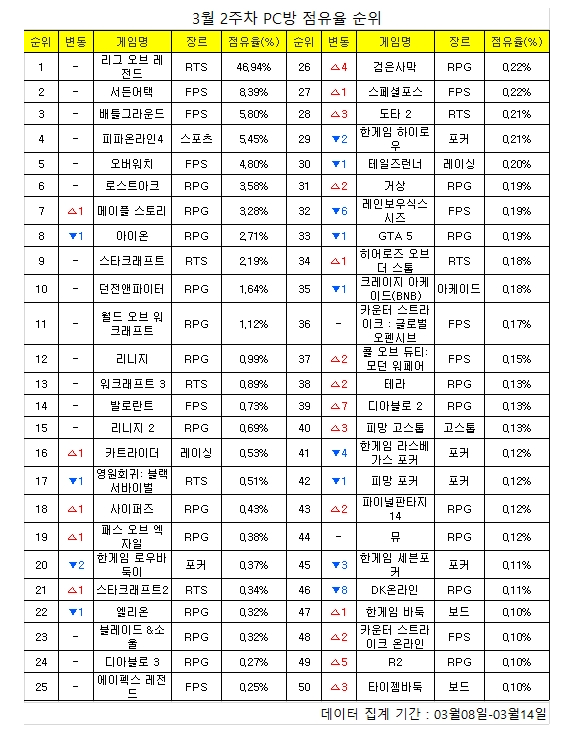 PC방 인기 게임 순위를 살펴보겠습니다.