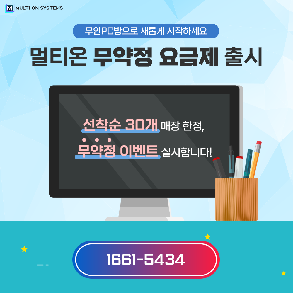 최근 멀티온시스템즈는 선착순 30명에 한해 '무약정' 이벤트를 실시하고 있습니다.