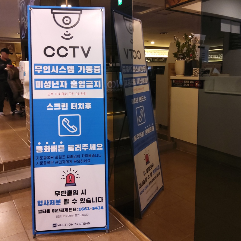 강릉무인피시방 곧곧에는 무인시스템 가동중임을 알리는 표지판이 있습니다.