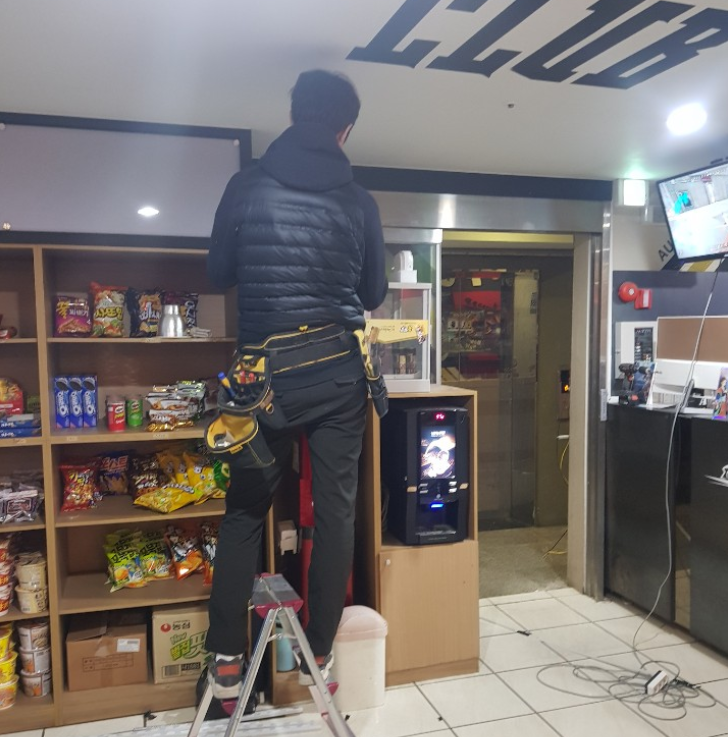 멀티온시스템즈 설치팀이 대전무인피시방에 CCTV를 설치하고 있는 모습입니다.
