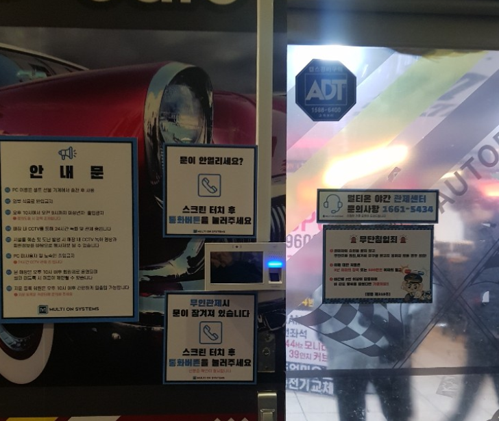 대전무인관제피시방 곧곧에는 무인운영시스템이 돌아가고 있다는 안내문이 붙어 있습니다.