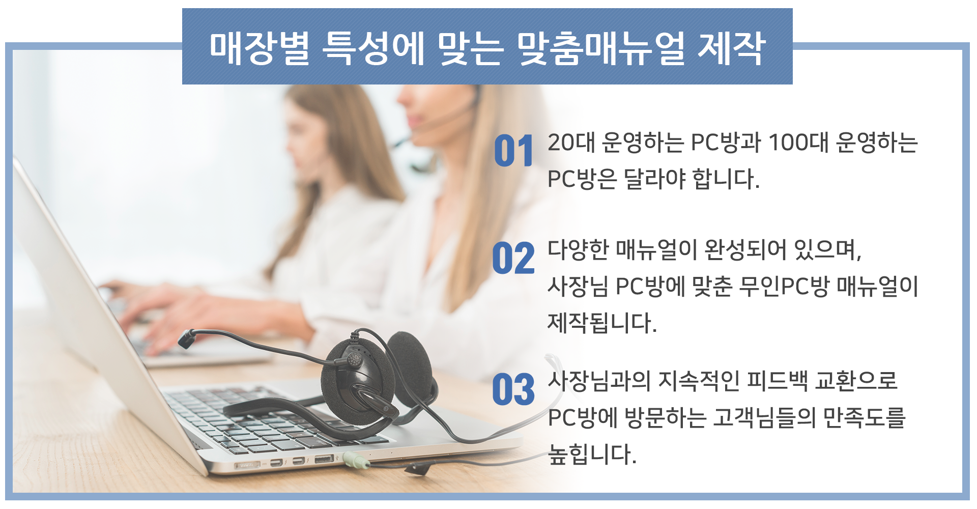무인pc방에서 일어날 수 있는 고객불편사항, 도난문제, 금연구역 내 흡연, 야간 미성년자 출입 등 각종 문제들로 인해 무인pc방으로 전환하는 데 고민하는 점주분들이 많으신데요. 그런 분들께 무인관제시스템을 알려드립니다.