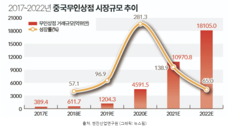 무인매장이라는 말은 더 이상 미래기술처럼 느껴지지 않을 만큼 보편화가 되었습니다 QR 결제 등 비대면 결제 방식이 활성화되어 있는 중국에서는 무인매장 시장을 22년 1조 8천억 위안 규모로 예측된다고 합니다 무인매장은 전 세계적으로 확산 중입니다 인공지능과 사물인터넷 센서 기술의 발달 그리고 노동 인력 부족 최저임금 이산 등의 이유로 무인화는 활발하게 이루어지고 있습니다 한국도 최저임금의 인상 52시간 근무 제도 적용으로 인건비 부담이 과중해지면서 무인화 추세가 늘고 있습니다 확대되는 무인매장 예전에는 셀프주유소 셀프 세차장 무인 pc방 코인세탁소 등 제한적인 업종에서만 무인이 진행되었다면 무인 아이
