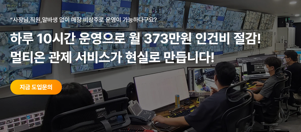공간의 가치를 극대화하고 싶다면, 사장님이 매장에 없어도 안심하고 수익을 만들고 싶다면, 이제는 무인화가 아니라 제대로 된 관제를 함께 보셔야 합니다.