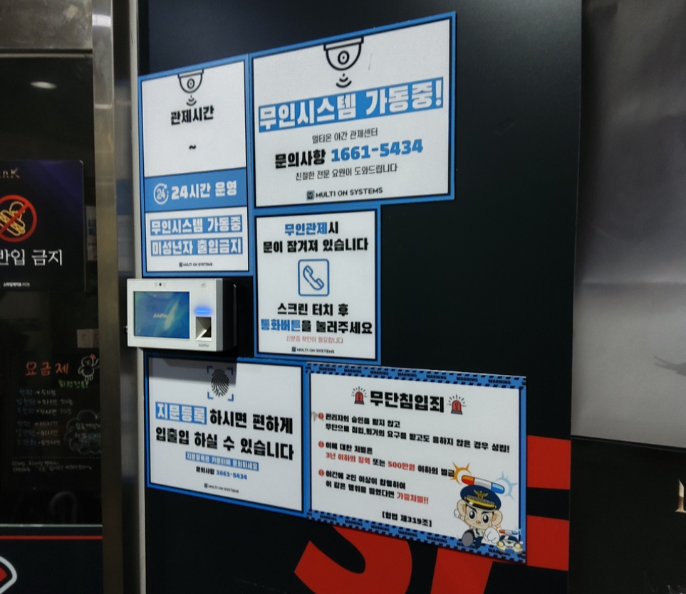 멀티온시스템즈 설치매장은 사진촬영에 동의하신 일부 매장만 공개되고 있습니다. 코로나19로 어려운 시국인데 멀티온시스템 무인관제시스템 무료설치하고 인건비를 절약하세요^^