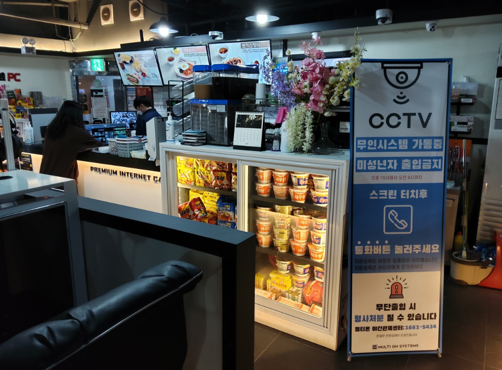 대신 중앙관제실에서 CCTV를 통해 PC방 내외부를 관리해 주고, 문제사항이 있을 경우 원격으로 통제합니다.