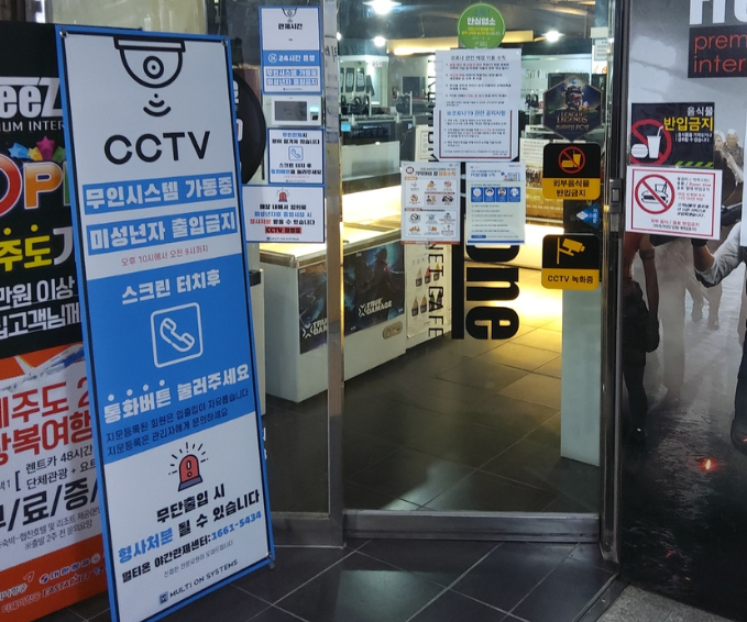 신규방문객의 경우 CCTV를 통해 신분증 확인 후 관제실에서 문을 열어드리기 때문에, 일산무인PC방 내 미성년자 출입가능성은 걱정 하실 필요 없습니다. 또한, 만일 문제사항이 생겨도 신분증을 확인했기 때문에 해결이 가능합니다.
